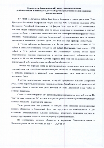 Для родителей (усыновителей) и опекунов (попечителей) детей-инвалидов с детства I группы увеличится компенсационная выплата по уходу